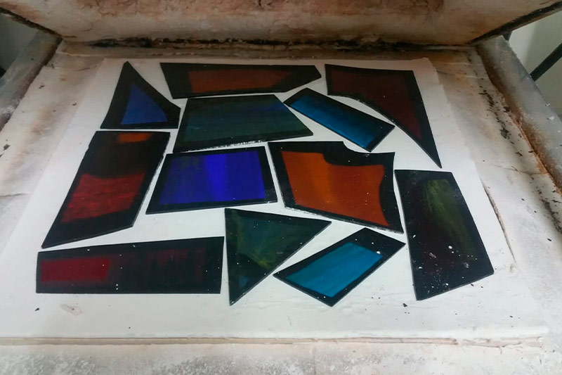 Están compuestos por vidrio que ha sido coloreado con óxidos metálicos durante el proceso de fabricación. Una vez enfriado, se ensambla para producir obras de arte decorativas.